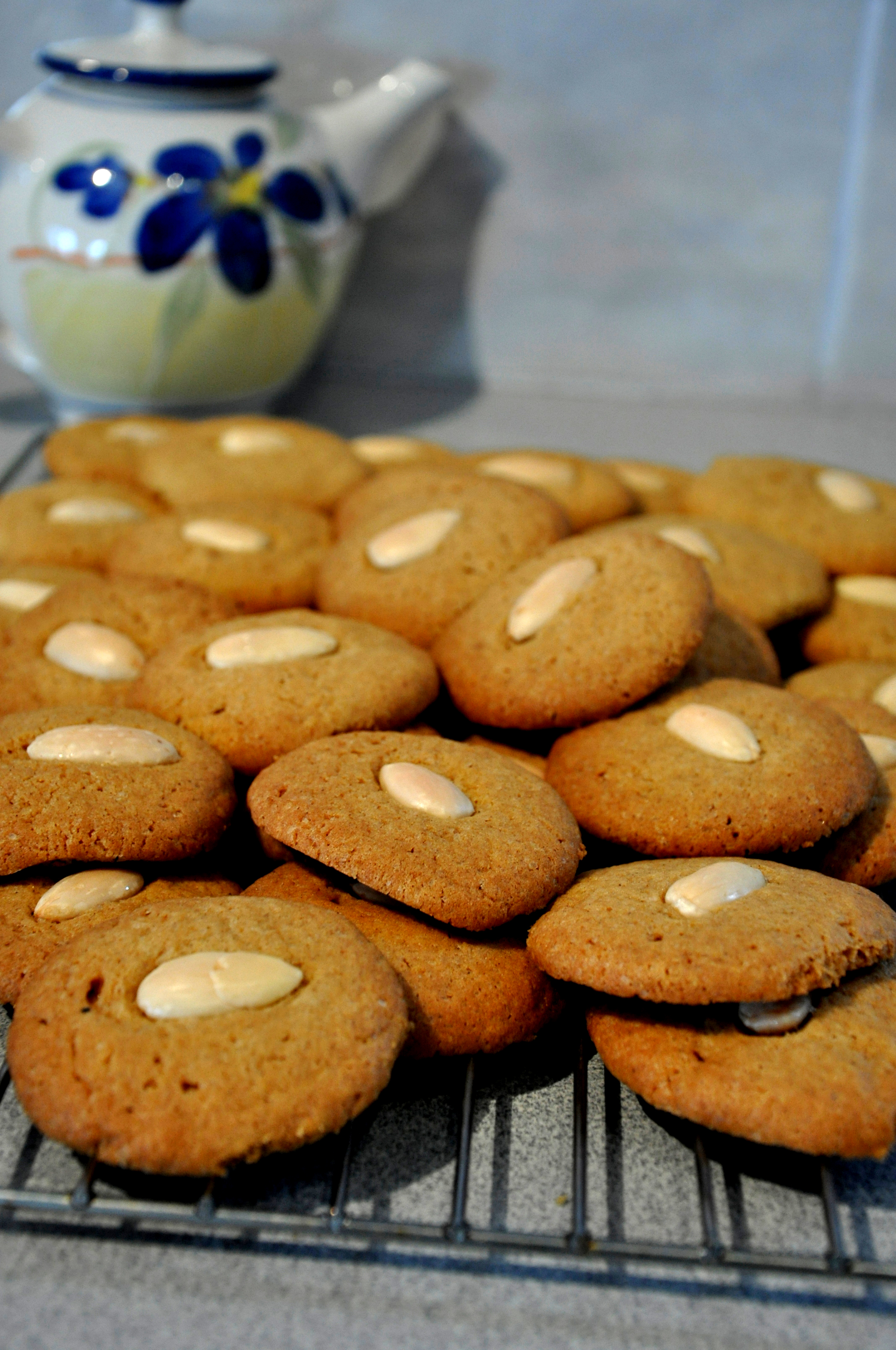 Baking these biscuits again after many many years has been a revelation! Following my Mum’s instructions and using inexpensive ingredients that were always on hand, this recipe is the source one of my oldest baking memories. I remember these baked morsels as a very plain sweet biscuit. Mum didn’t teach me to brown the butter, she probably was unaware of the depth of flavour this created, and her biscuits were never adorned with anything at all, nuts being considered an expensive indulgence. Taking care with the method and the presentation elevates these light, crisp, sweet morsels into the realms of elegance.