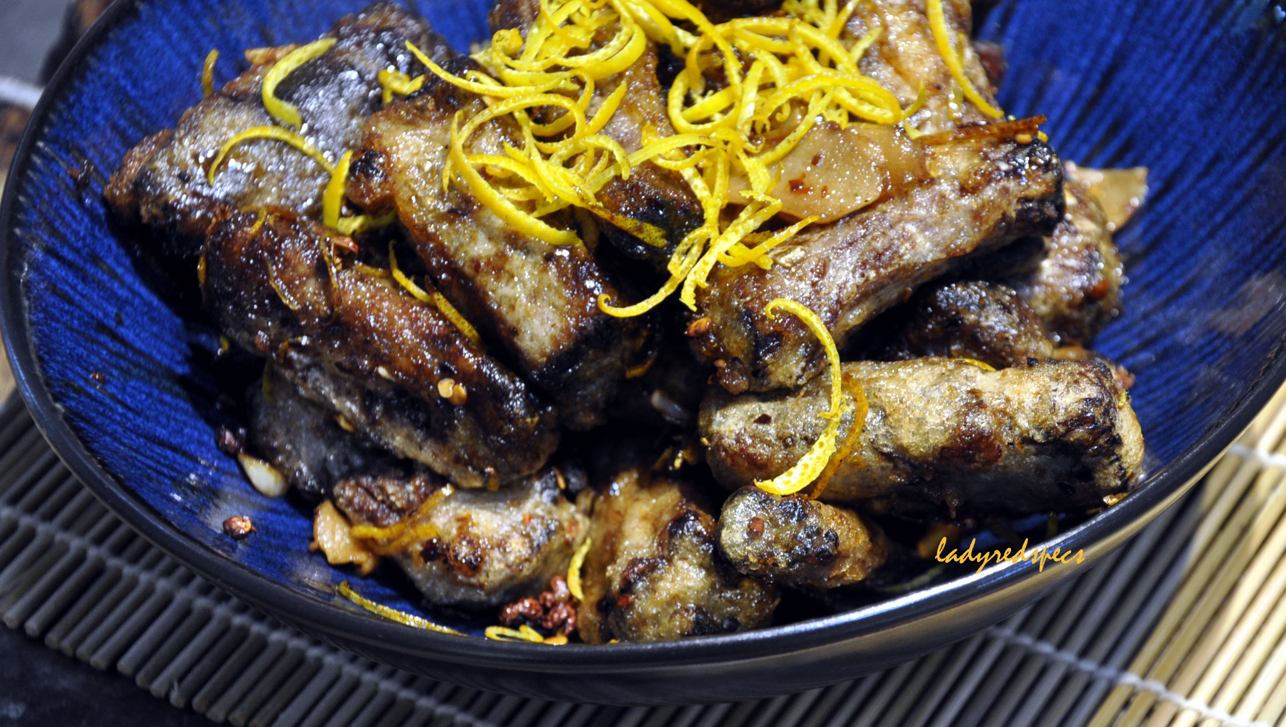I didn’t plan to make this dish, but I unwittingly bought twice the weight of meat needed for the red braised brisket which I posted a couple of days ago. This crispy orange peel beef recipe from Kylie Kwong’s “Simple Chinese Cooking Class” needed exactly the amount of cold red braised brisket I had leftover. I did change the chilli and pepper component just a little.
