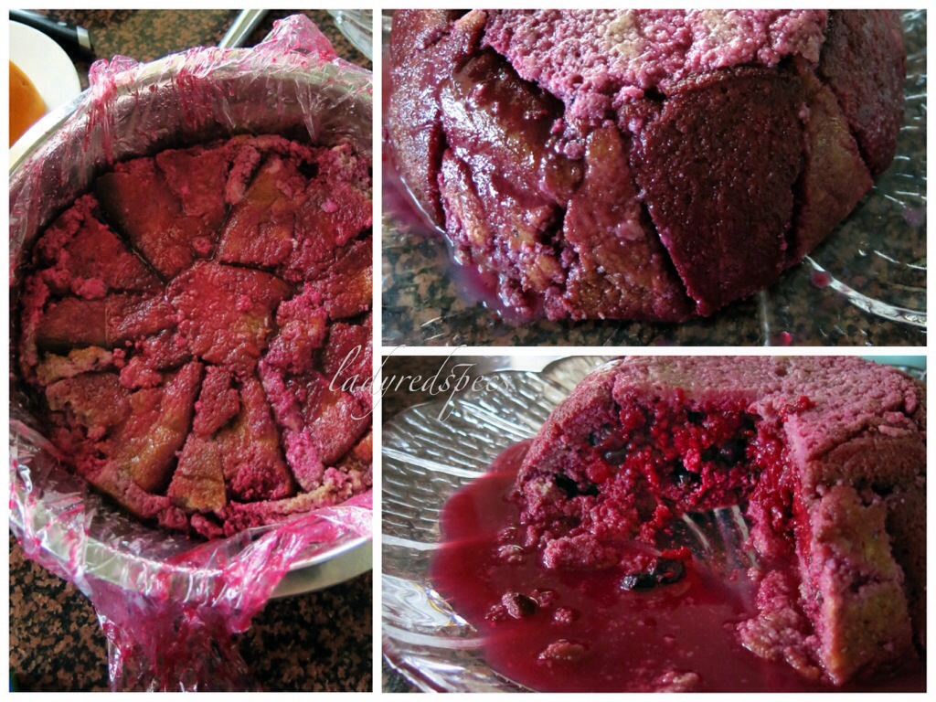 Summer pudding without gelatine or dairy or egg for glue always amazes me. The pudding turned out the basin beautifully, sliced easily and miraculously kept it shape. More importantly, it tasted delicious, there were no leftovers!!