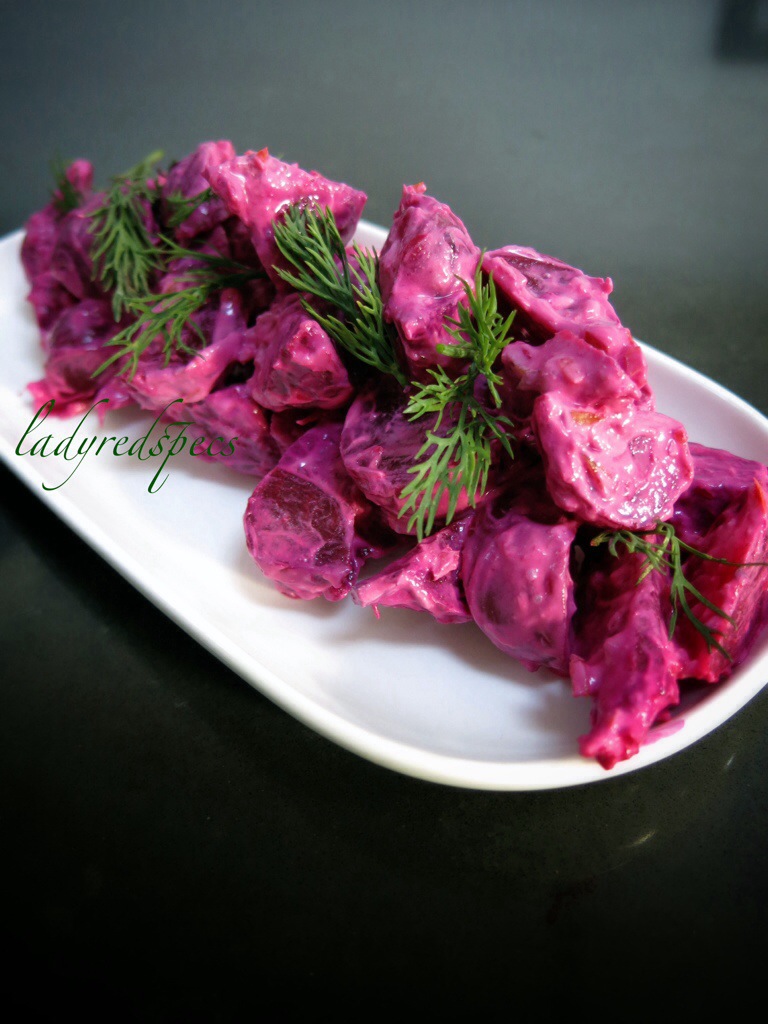 The yogurt dressing gives the beets a great color as well as tasting good, I’m sure.