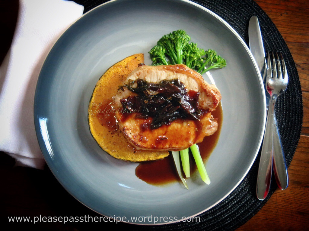 John’s recipe has been next to the stove since he posted it – now I have your very interesting one too: what a darn pity I did not read this an hour earlier as I have a lovely pork chop in marinade for lunch 😦 ! And do have cumquat marmalade!!! Love the simple cumin pumpkin to go alongside . . . Well, next week!!!