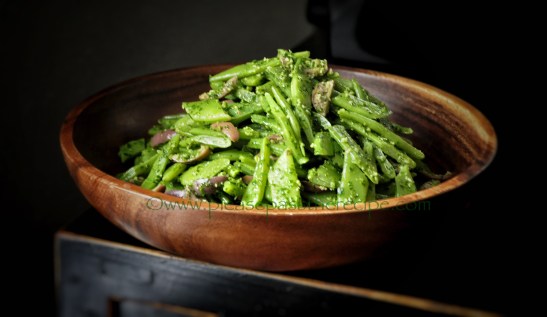 Romano beans are my favorite. I think they are meatier and much more flavorful than round green beans. And I can’t think of a better way to prepare them. I could eat parsley pesto by the spoonfuls and what a great idea to toss it with Romano beans! And what a nice finish using kalamata olives…I love this! Not sure when I’ll see Romano beans but no doubt when I do what I’ll be doing with them. 🙂 Of course this would be wonderful with the regular green beans too…