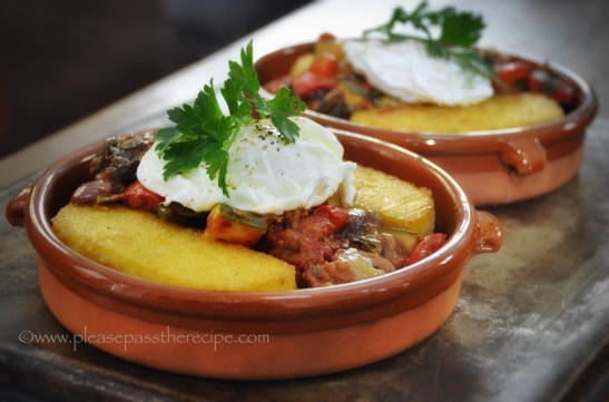 Whilst I am not retired, I was wondering if there was room for one more? Polenta and egg is a divine match and with the caponata? Hello Mrs R!