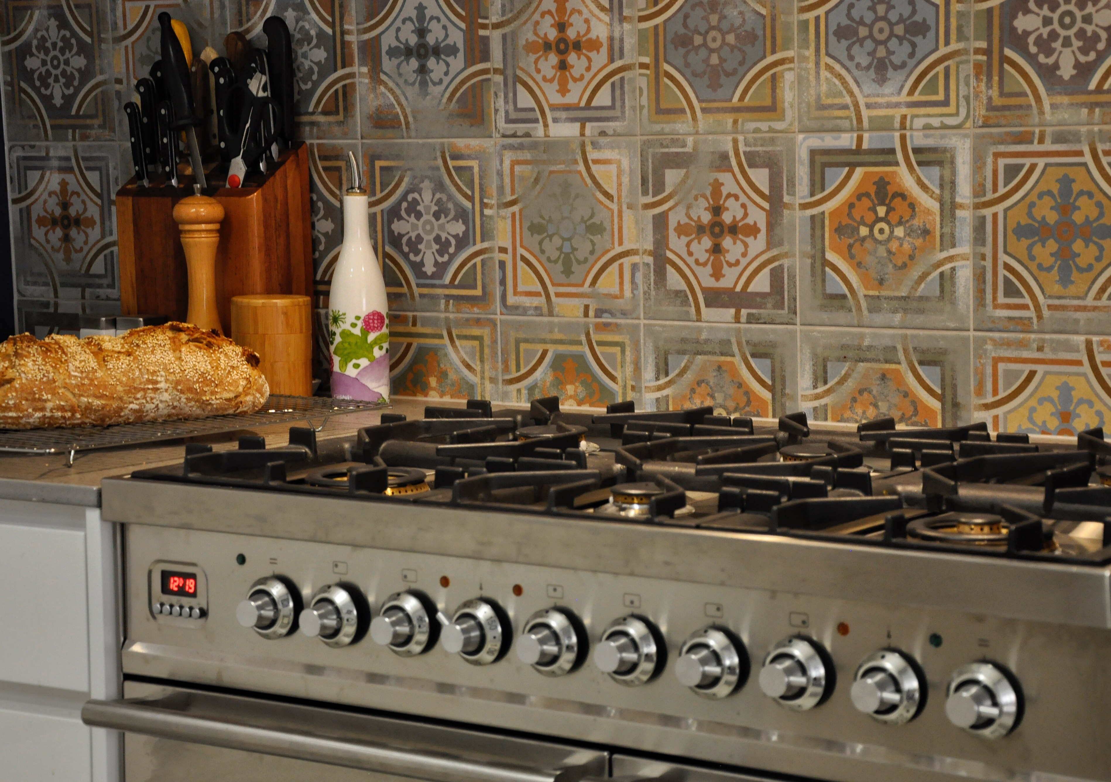The splash back tiles far exceed my expectations. They looked amazing in the showroom but that little niggle of doubt had been eating at me until I saw them on the wall. They add a necessary touch of complexity to the look of the kitchen. I’m also extra pleased with my new Ilve cooker. My bread now has extra good crusts and my wok gets hot enough to stir fry.