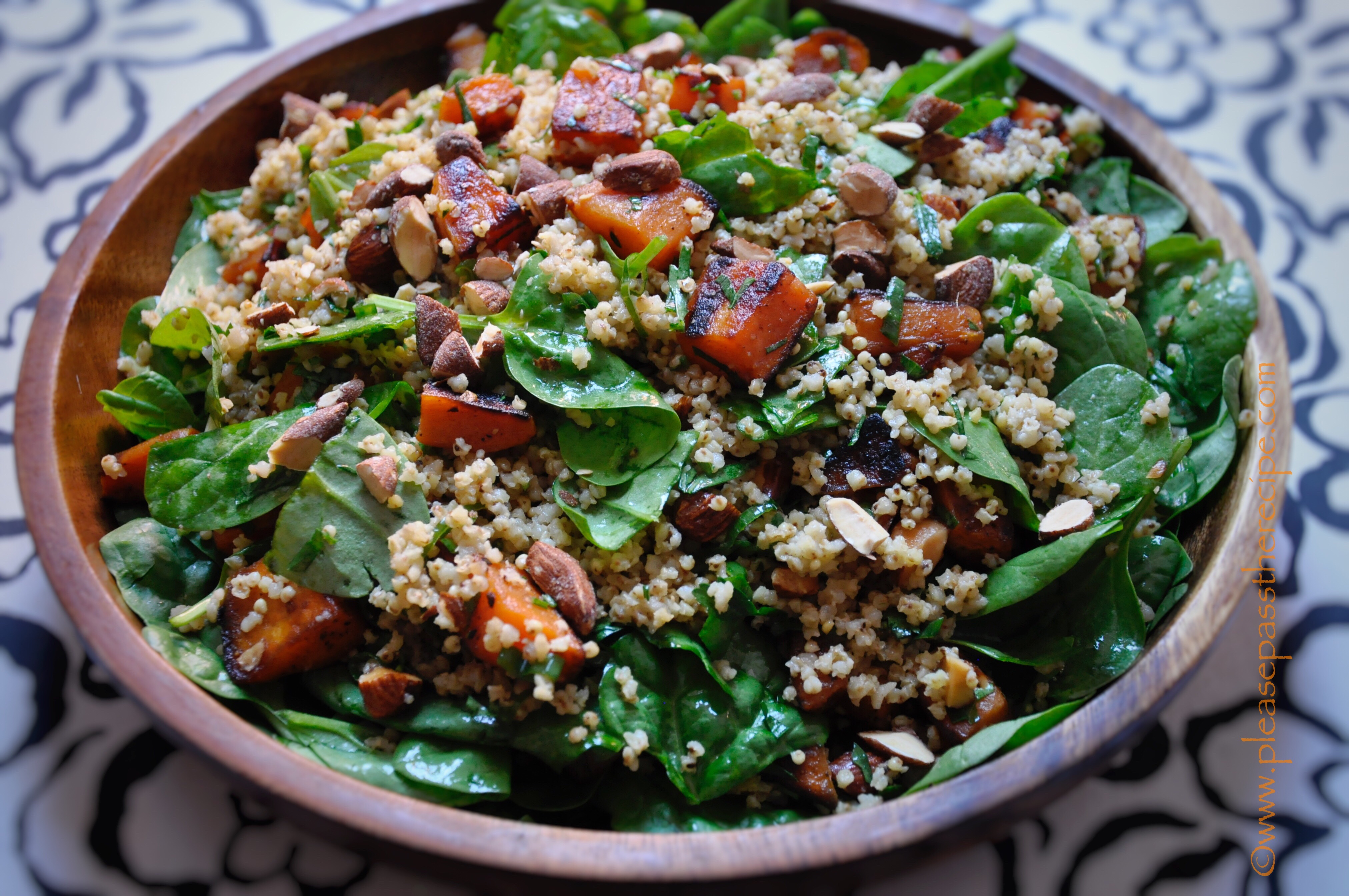 Roasted Sweet Potato, Couscous and Spinach Salad – serves 4