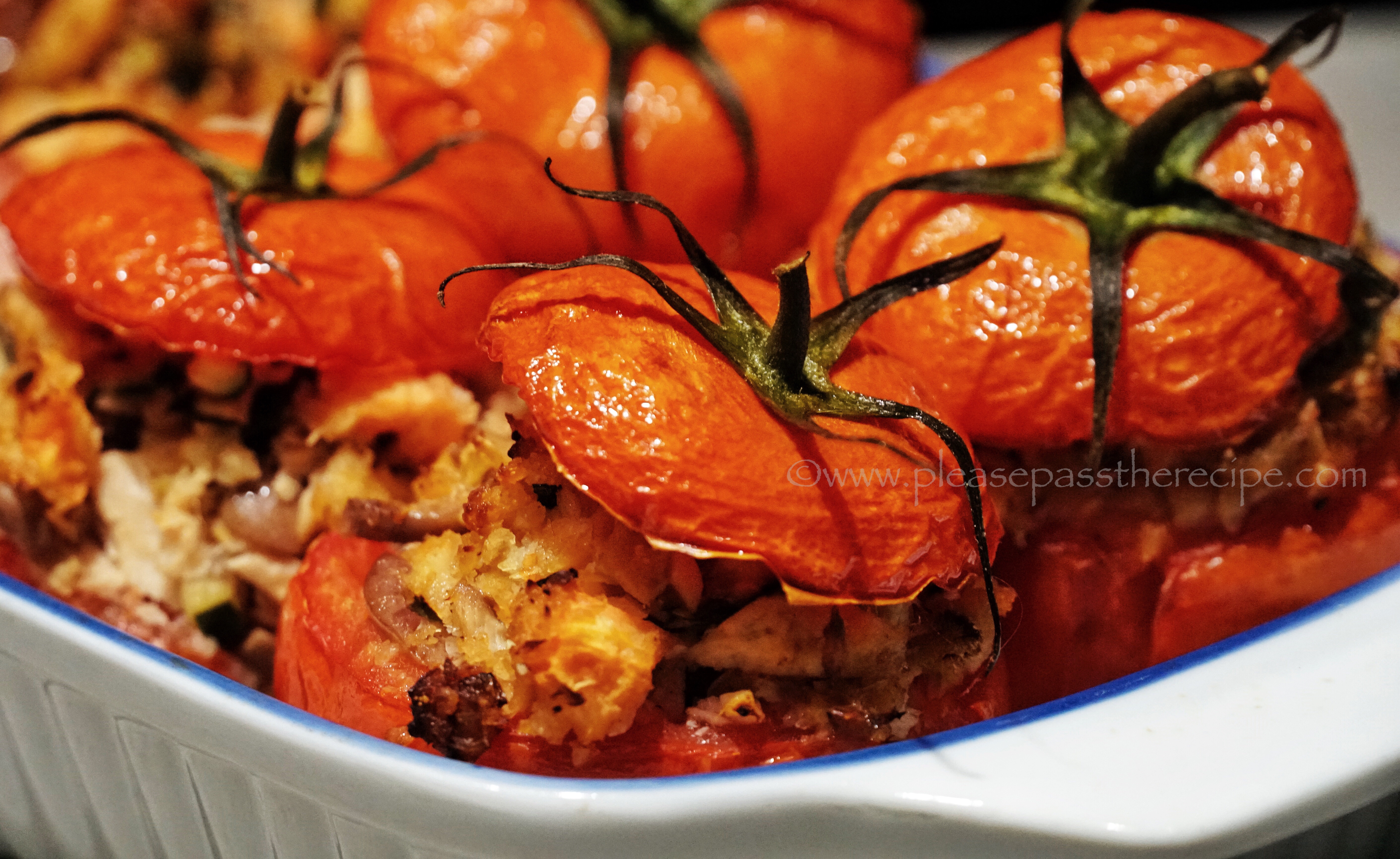 The tasty tomatoes with their simple stuffing were a lovely light summer lunch served with a crisp green side salad.